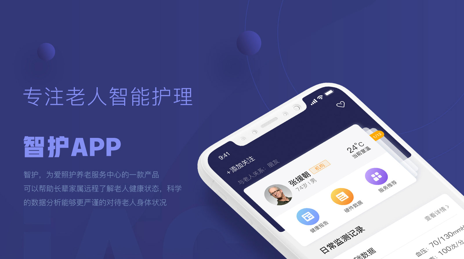 智護app是為老年人量身打造的軟件,實(shí)時(shí)監測老人最新的身體指標和提出相應的建議解決方案,該軟件還裝有智能提醒設置,讓你不僅可以輕松生活還能呵護到老人。智護app讓您對長(cháng)者的關(guān)愛(ài),觸手可及,專(zhuān)業(yè)的智能遠程看護系統,科學(xué)的看護數據報告,讓您能及時(shí)的掌握長(cháng)者信息。 看護…